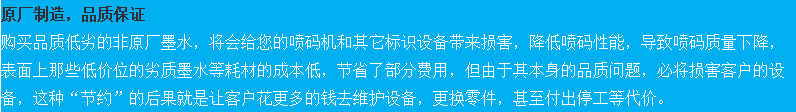 為了確保麥修拓墨水能夠達到最好的效果和在噴碼機上高水平的運行,麥修拓墨水系列都是依托德國工廠的高研發(fā)能力,并且在國內(nèi)經(jīng)過長時間、多環(huán)境的測試,完全能夠達到原廠家提供的墨水質(zhì)量,我們才投放市場,為廣大客戶提供服務,我們著重保證,墨水和其它消耗品的品質(zhì),保證噴碼效果和機器穩(wěn)定持續(xù)精確。